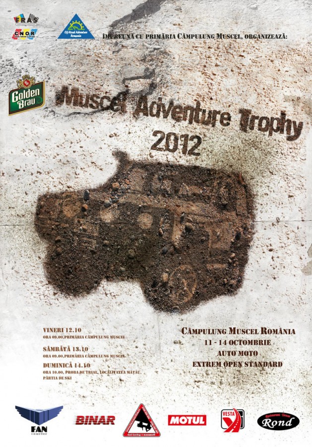 Clubul Off Road Adventure Romania organizeaza Golden Brau Muscel Adventure Trophy, a 6-a etapa a sezonului 2012 din Campionatului National de Off Road. Competitia de navigatie si indemanare reuneste deopotriva piloti auto si moto. Traseul se deruleaza pe o distanta totala de aproximariv 170 Km, in judetul Arges, imprejurimile orasului Campulung Muscel si in masivul Iezer – Papusa.