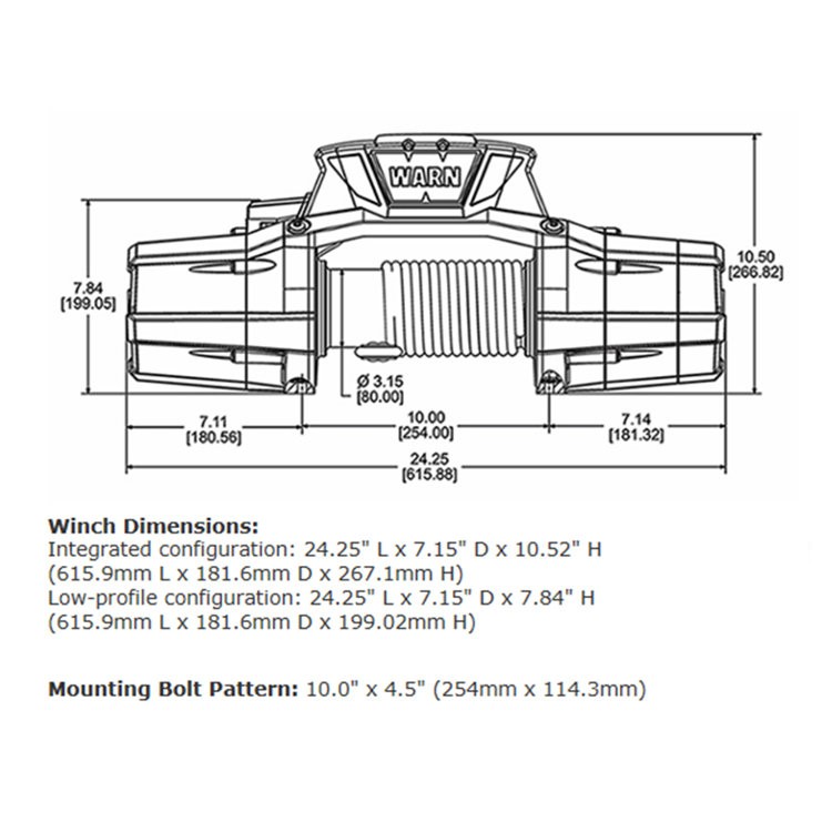 Daca esti interesat sa achizitionezi un troliu durabil si puternic, Warn a realizat pentru tine Seria Zeno, cu cea mai mare putere de tractiune si viteza de infasurare.In kit este inclusa telecomanda care iti va asigura o distanta de operare sigura. Carcasa este protejata prin vopsire tip "powder coating" in culoare neagra, ceea ce-i confera un aspect agresiv si o protectie inalta la coroziune. Specs: Viteza de tractiune marita, reducere a vibratiilor periculoase. Elemente fabricate din otel inoxidabil. Carcasa turnata dintr-o singura piesa Motor electric puternic si silentios seria Wound Reductor in 3 stagii cu raport 216:1 Tambur marit pentru uzura redusa a cablului Frana mecanica automata Protectie IP68 Cablu sintetic tractiune 12,000 lbs Greutate: 80 lbs / 36 kg Cablu tractiune Spydura Pro synthetic Voltaj: 12 Volt Baterie recomandata: 650 CCA minimum Dimensioni: Dimensiunile exacte sunt afisate in poza/ schita. Tambur: 3,15 x 9" / 8 x 22,9 cm Lungime cablu tractiune 80" / 24,4 m Grosime cablu tractiune 3/8" / 9,52 mm Pachetul contine: Troliu, Telecomanda, Cablu sintetic.